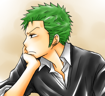 「ルフィ辺りがサンジにちょっかい出してて、それがベタベタしてるように見えるから、ちょっと機嫌が悪いゾロ」を描きたかったんですけど・・・。